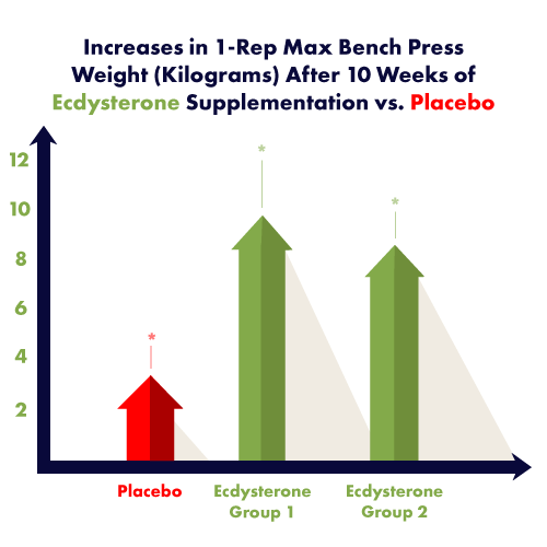 Ecdysterone supplementation was also correlated with a significant increase in bench press and squat performance compared to the placebo group.